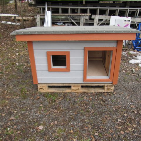 Se on valmistettu puusta ja siinä on pyöreä sisäänkäynti.