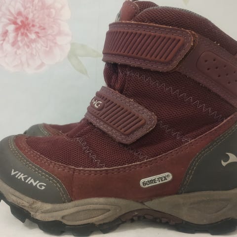 Myydään tarpeettomana tyttöjen Viking Goretex viininpunaiset talvikengät koossa 32. Pohjallisen mitta n.20cm.