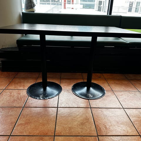 Tukevat pöydät rautajalustalla.