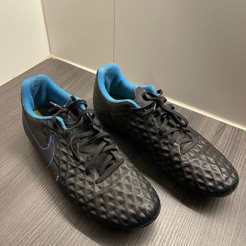 Nike Tiempo jalkapallokengät, koko 42.5 Väri vihreä ja keltainen, materiaalina synteettinen nahka ja kumipohja. Sopivat jalkapalloon nurmikentälle.