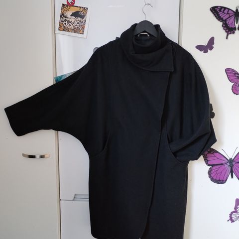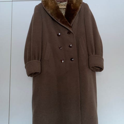 Vähälle käytölle jäänyt laivastonsininen villakangastakki, 80% villaa. Aito turkiskaulus.