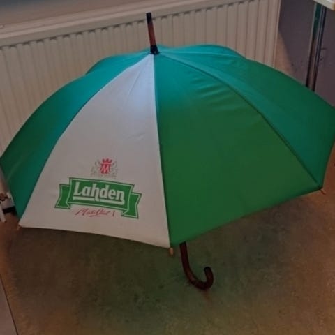Omega Significant Moments sateenvarjo, jossa on punavalkoinen väritys. Sateenvarjossa on puisella kahvalla varustettu varsi. Sopii suojaamaan sateelta ja tuulelta.