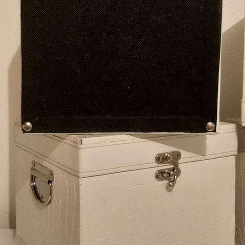 Ehjät laatikot. Paikoin jo kulumaa, toisessa pieni pinkki tahra kyljessä. Yleisilme kuitenkin vielä siisti. Mittoja kuvissa. Kuvien pyöräalusta ei kuulu kauppaan