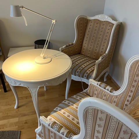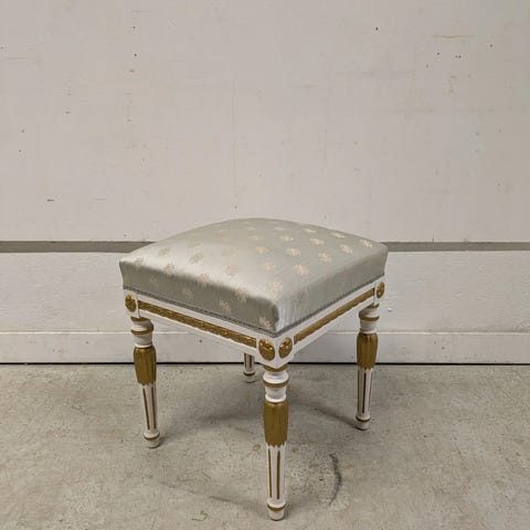 Ostetaan kuvan mukainen kustavilainen rahi. Väri helmenharmaa tai helmenharmaa patina. Verhoilulla ei ole väliä.