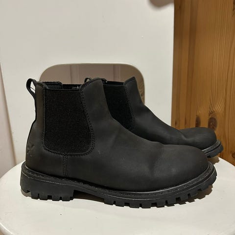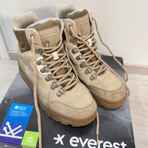 Myydään siistit, kevyehköt, kumipohjaiset talvinilkkurit, mokkapintaiset, mutta hyvin kosteita talvisäitä siistinä kestävät. Käytetty siisti kunto, mutta vuoren karvassa paikoin kulumaa kantapäiden kohdalla, joka ei haittaa käyttöä. Vetoketjut sisäsyrjällä.