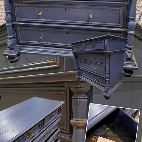 Tummanruskea puinen vanha hylly. 3 irrotettavaa hyllyä, sokkeli alhaalla. Huom. syvyys. Elämän jälkiä. Mitat 90x120x24. Nouto.