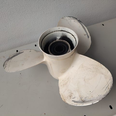 Perämoottorin potkuri. Kaipaa korjausta! Ei tiatoo mihin sopii.Ehkä yamaha.