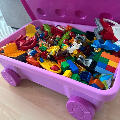 LEGO DUPLO Muu rakennuspalikat sisältää värikkäitä muovisia palikoita. Sopii lasten leikkeihin ja rakenteluun. Palikat on säilytetty muovisessa säilytysastiassa.