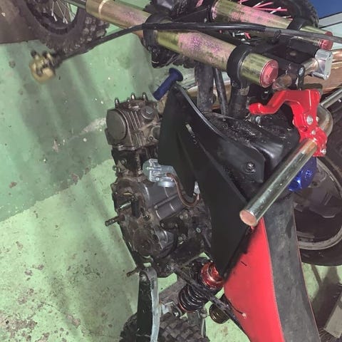 Ostan korjausta vaativan mopon tai moottoripyörän.