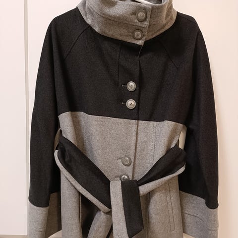 Italialainen Teresa Tardian pitkähkö siisti villakangastakki. Materiaali 70 % villaa, 15 % kashmiria, 15 % polyamidia. Pituus 167 cm käyttäjällä vähän polven alle. Pesetetty pesulassa eikä ole sen jälkeen käytetty. Myös vuori ehjä ja hyvässä kunnossa.