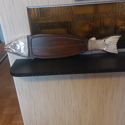 Puinen tarjoilulauta kalanmuotoisella kuvioinnilla