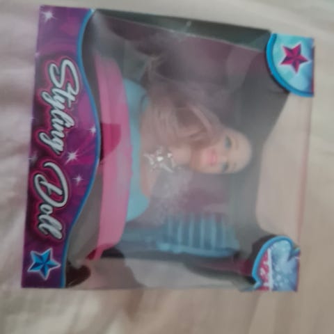 Barbie kampauspää, jolla on vaaleat hiukset ja vaaleanpunainen yläosa.
