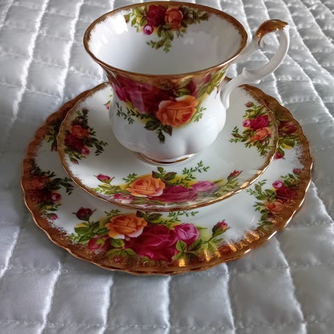 Ruusu aiheinen Royal Stafford kahvikuppi setti, jossa 12 osaa