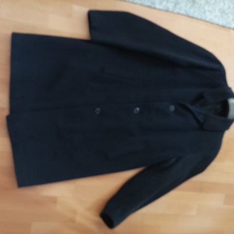 Turon valmistama talvitakki koko 48, väri musta, ruudullinen vuori jossa 25 pros villaa.