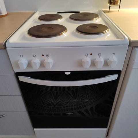 Annetaan uuni jossa etulasi rikki. Kahva on tallessa. Muutoin ihan hyvä kuntoinen suoraan seinästä irrotettu.