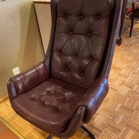 Hieno retro nojatuoli, keinuu ja pyörii.