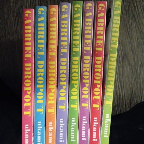 Gabriel Dropout manga-sarja, osat 1-6, suomenkielinen painos. Kansissa pientä kulumaa. Nouto onnistuu Keravalta tai voin myös postittaa. Voidaan tehdä toridiilillä tai ilman :)