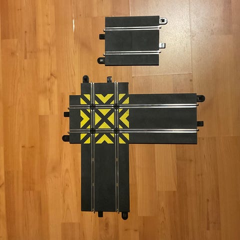 Käytettyjä mutta ehjiä Scalextric autoradan rataosia.