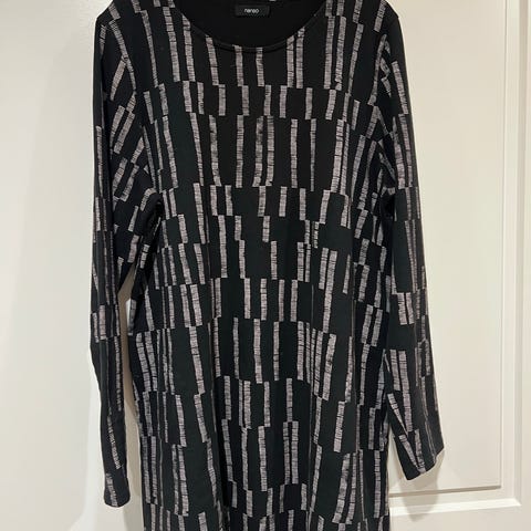Erittäin siisti musta/beige kuviollinen plyyssinen pusero. Sopii puserona tai takkina. Kai-kai 60, koko pituus 70.