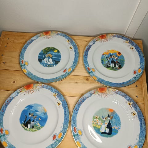 Myydään Rosina Wachtmeisterin kissa-astiaston kolmikerrosvati/tarjoilu-/kakkuvati. Täysin ehjä ja todella siistissä kunnossa. Kaikki osat tallessa. Korkeus n. 35cm kokonaisuudessaan, alimman lautasen halkaisija n. 27cm