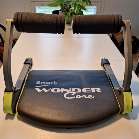 1) Monitoiminen kuntolaite Wonder Core Smart. Laite on suunniteltu vatsalihasten ja muiden kehon osien harjoittamiseen. Se on kevyt ja helposti siirrettävä, joka mahtuu helposti pienempäänkin kotiin. Vastukset on säädettävissä. Kirjoittamalla "Wonder Core Smart moves" Googleen, tai Youtubeen saa paljon vinkkejä miten laitetta voi käyttää monipuolisesti eri lihaksien kunnossapitämiseen ja/tai kehittämiseen.