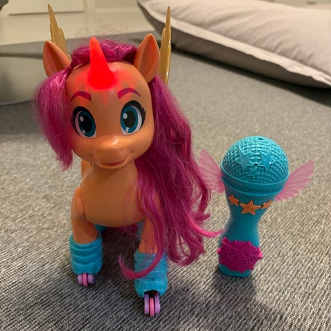 Myyntiin interaktiivinen My Little Pony Sunny. Rullaluistimille liikkuvaa Sunnya ohjataan mikrofonilla. Mikrofonin avulla Sunny myös laulaa ja tanssii. Ponin korkeus noin 23cm. Vähän leikitty! Seuraavalle ponifanille leikkeihin tai lahjaksi. Hp. 20€