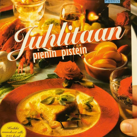 Uuden veroinen kirja keittiöön ruokien, herkkujen koristeluun.