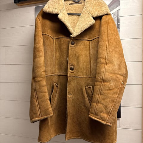Aitoa vintagea, arviolta 1970–1980-luvuilta. Suomessa valmistettu, aitoa lampaannahkaa ja -villaa. Uskomattoman lämmin, mutta itselle hieman turhan kapea hartioista.