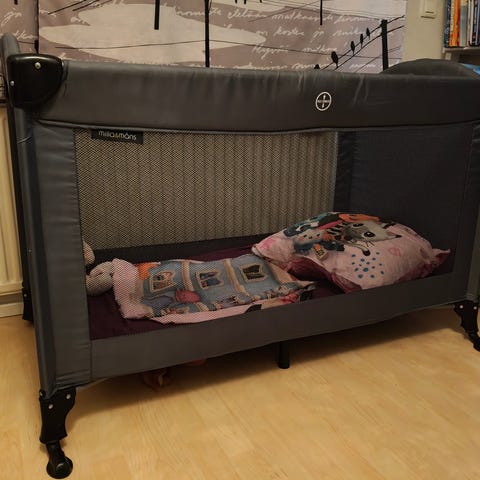Safety 1st matkasänky. Säilytyspussi hieman kärsinyt mutta sänky siisti ja toimii.