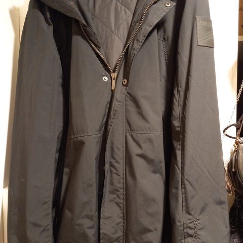 Erittäin hyvä takki, taitaa olla joku nrj:n sponsoroima. Oli käytössä itsellä ja eipä nuo logot haitanneet partioreissuissa menoa. Nyt jäänyt itselle pieneksi. L kokoinen. Ei ole kastunut, ainakaan koskaan läpi asti joten kalvot ehjät. Hieman likainen samaisten partioreissujen jäljiltä.