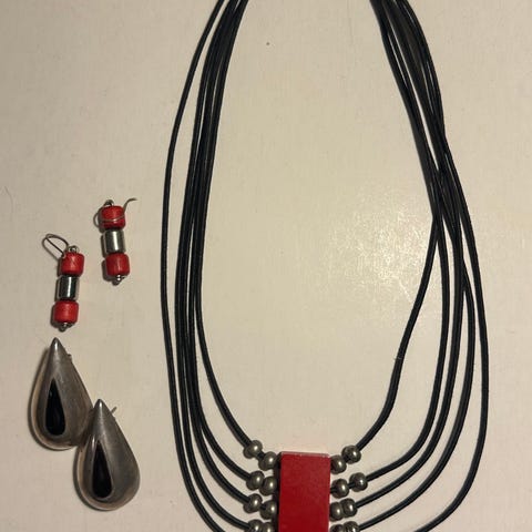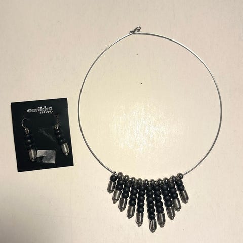 Ilmoitettu hinta on yhteishinta kaulakorusta ja kahdesta parista korvakoruja.