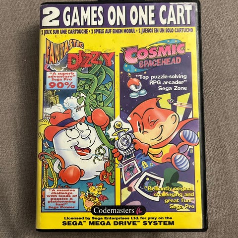 Peli testattu toimivaksi ja liitinpinnat puhdistettu, ei ohjeita, kasetin tarrassa jälkeä, kansipaperissa kulumaa ja päädyssä repeämää