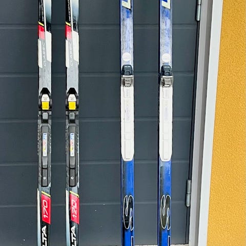 Myydään kuvan mukaiset Peltosen sukset ja Salomonin siteet, suksien pituus 190cm. (143)