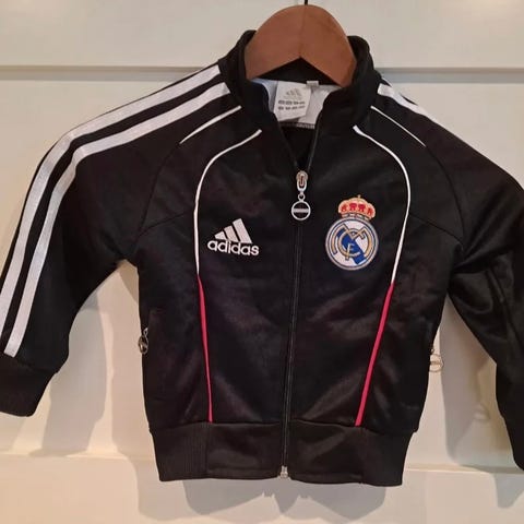 Valkoinen Adidas Real Madrid merkkinen takki myydään pieneksi jääneenä .