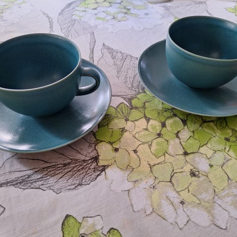 Teekuppi+ aluslautanen 10 € tai molemmat yhdessä 18 €, nouto Mikkelistä tai toridiili.