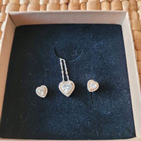 Zinzi hopeinen korusetti. Sydämet Swarowski kristallia muuten hopeaa. Sisältää kaulakorun ketjulla 40cm ja korvakorut 5.5cm. Kristallisydämet 1.5x2cm Kunto uuden veroiset. Hinta sis.postikulut Matkahuollon kautta. Ovh ollut uutena n.160e.
