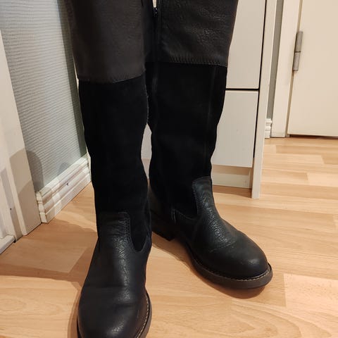 Paljon käytetyt. Napin avaamalla saa varren pidemmäksi. Toisessa kengässä takana moite