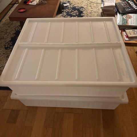 Onko sinulla käyttöä näille Ikean laatikostosta ylijääneille osille? Nyt toisella puolella kiinni kiskot, mutta ne saanee irti. Koko 66x58, paksuus reilun sentin.