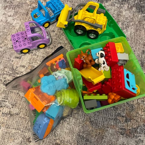 Suurin osa perus palikoita, mukana myös auto ja pari eläintä.