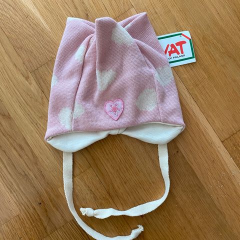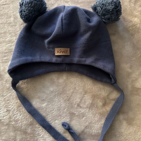 Vaalean sininen kotimainen villapipo puuvillavuorella. Korvaläpät.