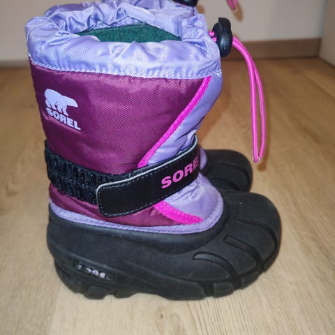 Sorel Lasten Talvikengät koko 26 tytöille (14cm). Kengissä violetti ja musta väri, ne on valmistettu vedenpitävästä materiaalista ja niissä on lämmin vuori. Kengät soveltuvat kylmiin ja lumisiin olosuhteisiin. Karva reunuksesta nukkaantunut mutta muuten ei moitittavaa. Eläintalous. Nouto Kellon Kiviniemi tai Toridiili.