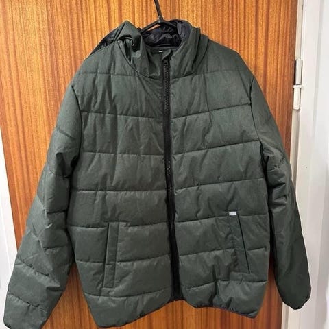 Taatusti lämmin ja lähes käyttämätön tummansininen talvitakki. Merkki Brave Soul. Kokomerkintä L mutta paremminkin XL, menee isolle miehelle. Itselleni olikin liian iso (175 cm). Monta taskua ja karvareunushuppu.