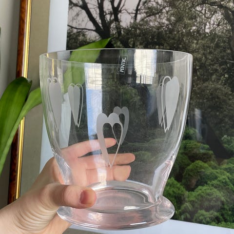 Pentikin lasimaljakko, kauniit suupuhalletut kuviot. Korkeus 20 cm.