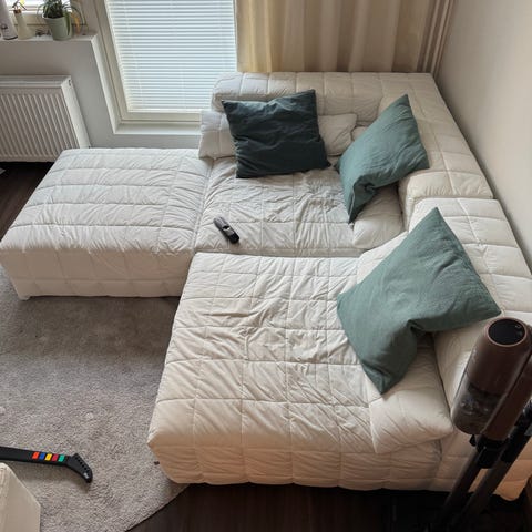 Tätä moduulikokonaisuutta ei näyttänyt löytyvän enää myynnistä, mutta maksoi uutena noin 1900e. Ilmeisesti (viimeinen kuva) Vilmersin sohva (https://vilmers.fi/tuotteet/).
