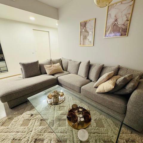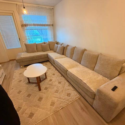 Sohva on pysynyt käytöstä huolimatta hyvässä kunnossa. Päälliset pestävät ja voin pestä ne ennen myyntiä, jos ostaja haluaa.