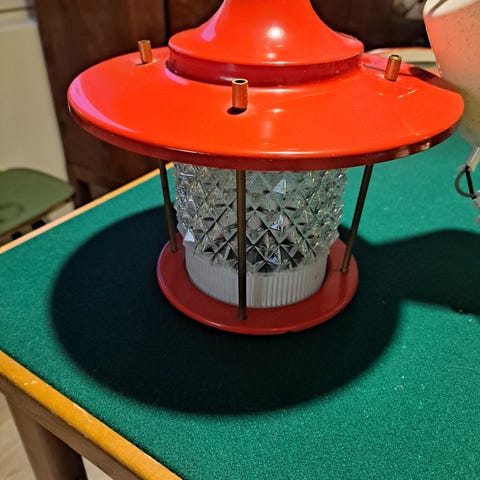 Vintage valaisin, 50-luvulta ? Värit ruskea ja valkoinen, täysin ehjä. Nouto Lassilasta, 00440 Helsinki.