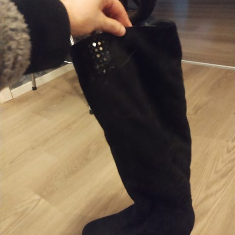 Ruskeat kiilakorkoiset saappaat. Kerran käytetty. Vetoketju sivussa. Koko 40, mutta pientä kokoa.