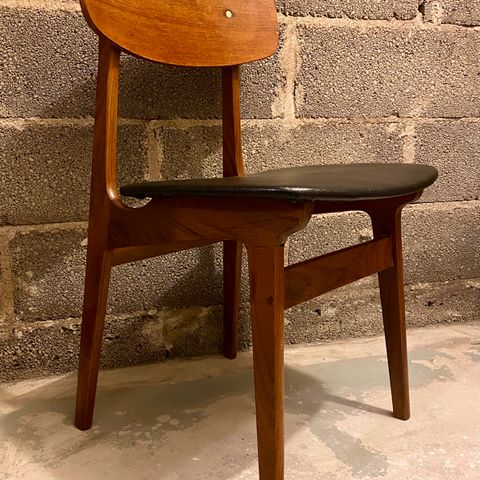 Valkoisella nahalla päällystetty vintage teak jakkara