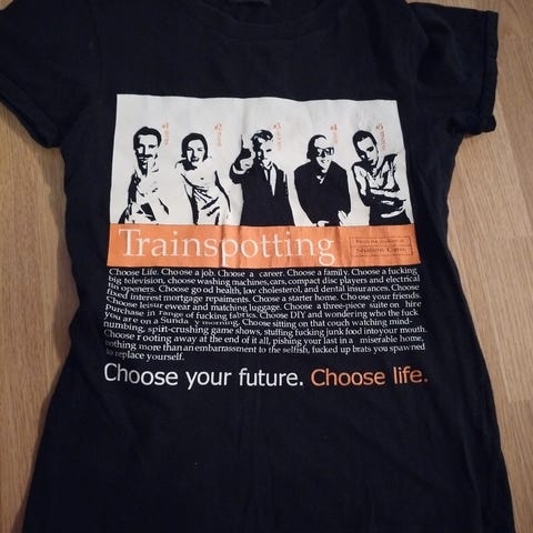Trainspotting leffa teeppari, koossa M. Puuvillaa. Aavistus pesunukkaa, muuten mainio käytetty kunto!