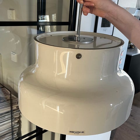 Moderni ja tyylikäs akryylikupuinen valaisin Struten, design Hans Bergström, valmistaja Atelje Lyktan. Kaunis häikäisemätön valo.